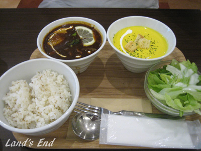 ばみちゃんは「ダブルセット」で、ビーフシチュー冷製パンプキンスープをチョイス。