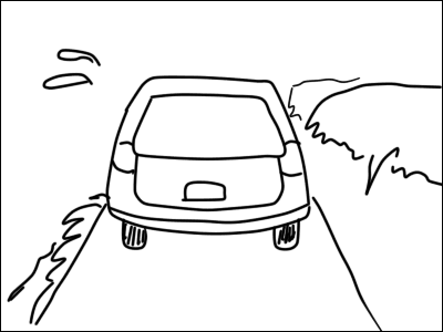 車ギリギリの道幅(滝汗) 片側は川なので崖になっているし・・・(^^;)
